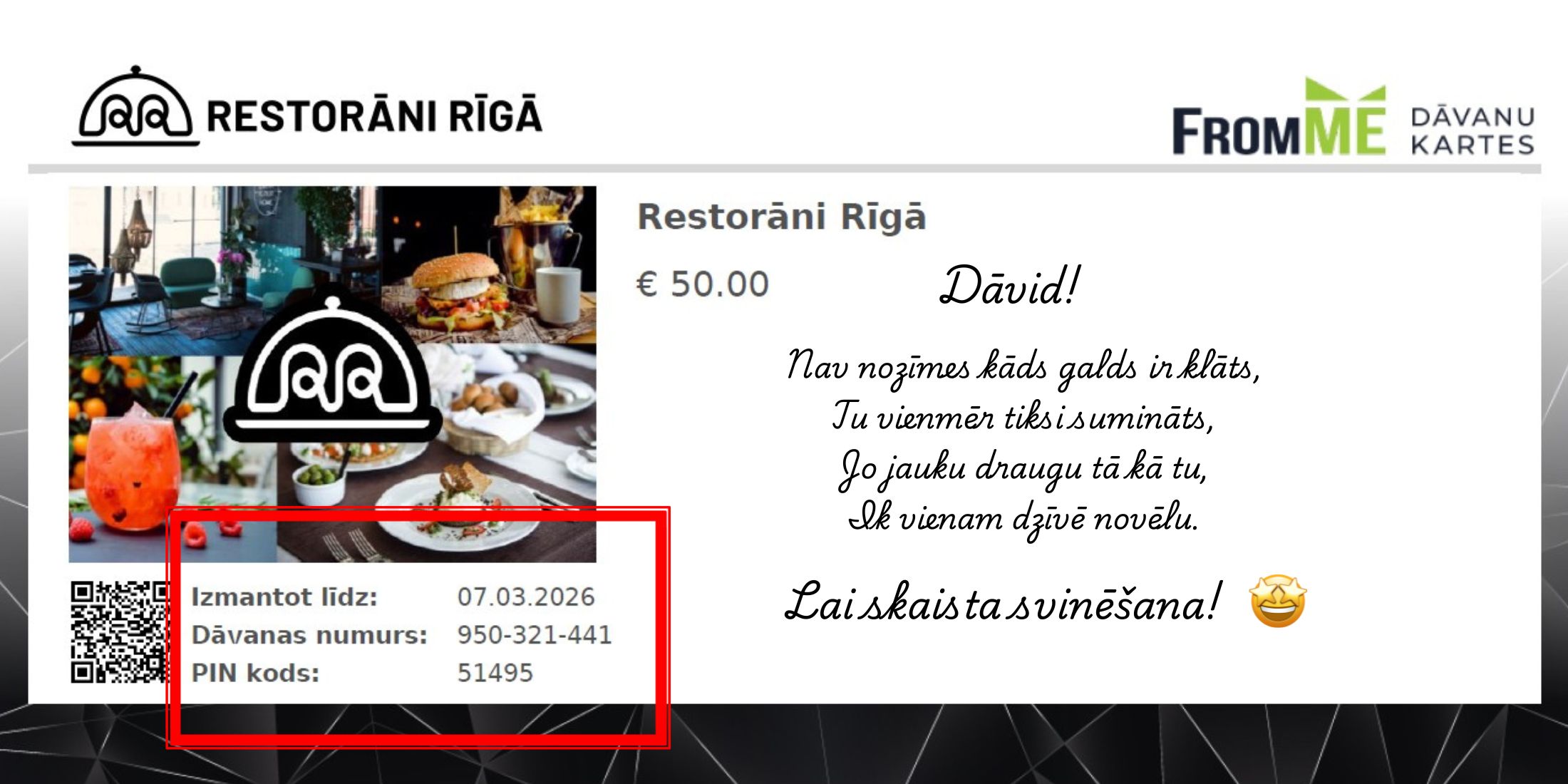 Спасибо, что выбрали подарочные карты FromMe.lv!
